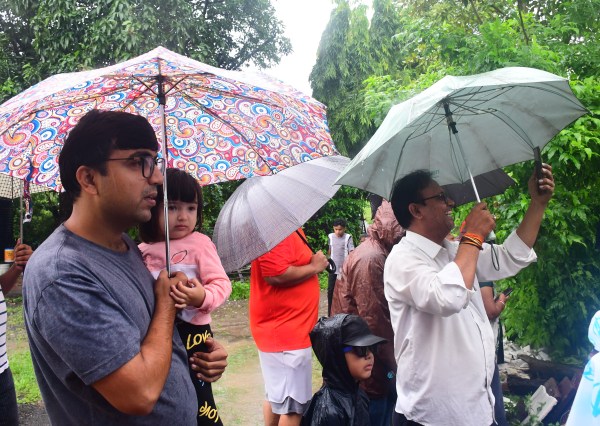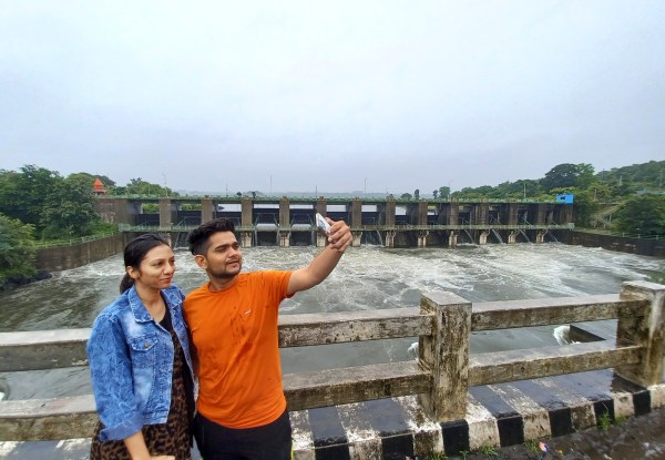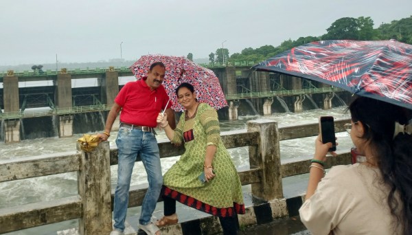 मोबाइल से वीडियो बनाने में लगा इस तेज बारिश में तो कोई सेल्फी लेते दिखा दृश्य कलियासोत डेम