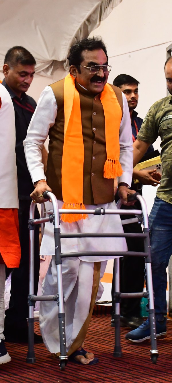 मंत्री राकेश सिंह के पैर में चोट लगने के बाद भी वॉकर लेकर पहुंचे