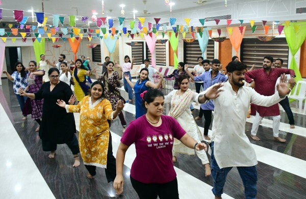 पत्रिका भोजपाल गरबा महोत्सव डांस प्रैक्टिस करते युवा
