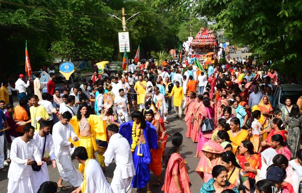 भोपाल @पत्रिका महाप्रभु जगन्नाथ की रथ यात्रा धूमधाम से निकली गई रथ यात्रा भक्तो ने थर्माकोल पर लिखवाया जगन्नाथ रथ यात्रा