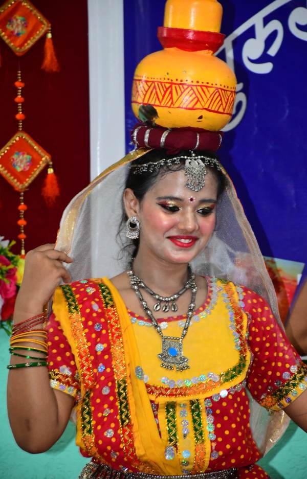 मां दुर्गा का रूप बनी छात्रा