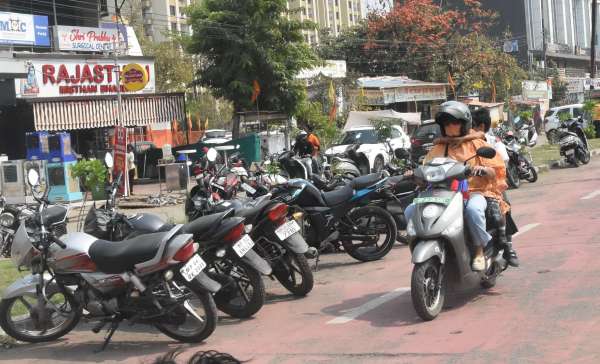 साइकिल ट्रैक पर वाहनों की पार्किंग।
