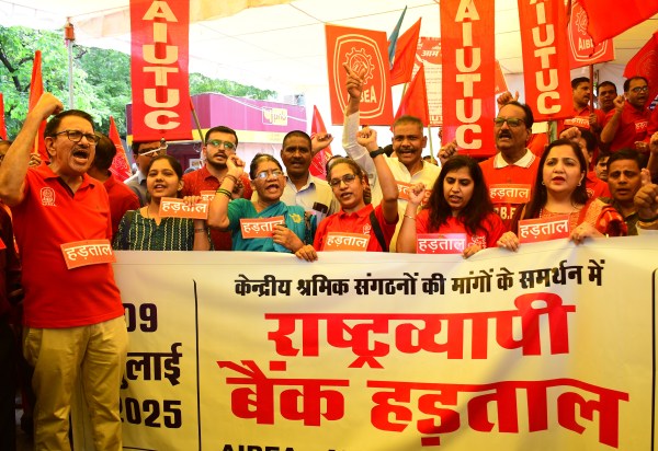ये कैसा प्रदर्शन हंसते मुस्कुराते हुए रैली निकाली बैंक कर्मचारियों ने
