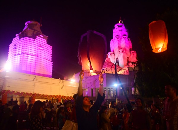 भव्य आतिशबाजी मंदिर परिसर में
