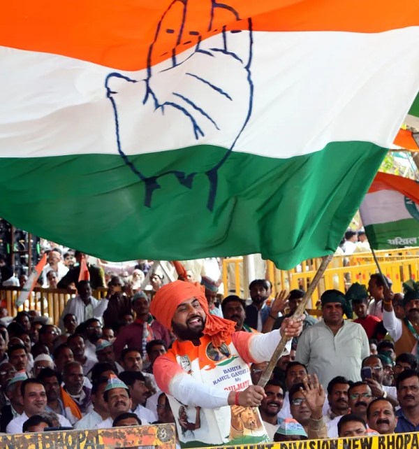 मल्लिकार्जुन खड़गे राहुल गांधी जीतू पटवारी अभिवादन करते हुए कार्यकर्ताओं को