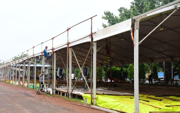 स्वतंत्रता दिवस परेड में दर्शकों के लिए तैयार हो रहा डोम