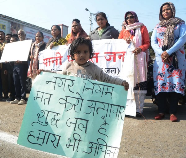 बहार पानी को लेकर प्रदर्शन बृज विहार कॉलोनी निवासियों का नगर निगम परिषद् के बहार