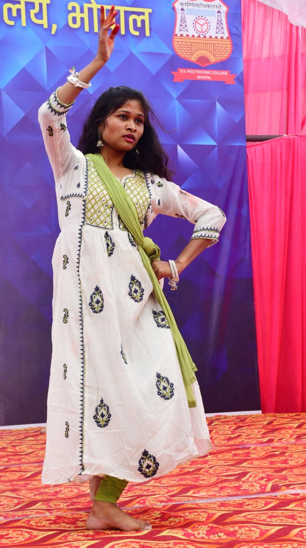 एकल डांस प्रस्तुति देती छात्रा