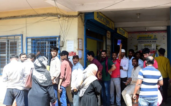 जीटीबी कॉम्प्लेक्स स्थित गैस एजेंसी पर लोगों की भीड़ गैस सिलेंडर बुकिंग के लिए
