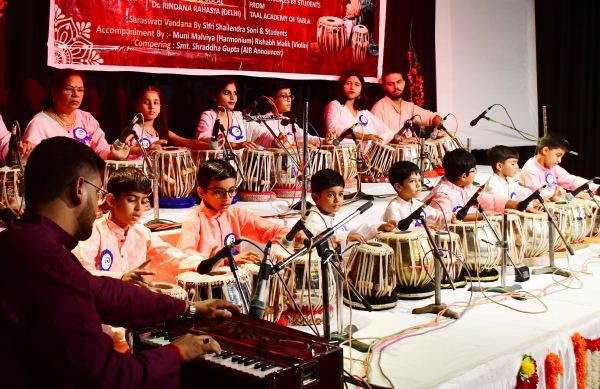 सामूहिक तबला वादन हुआ जिसमें बच्चे बड़े शामिल हुए