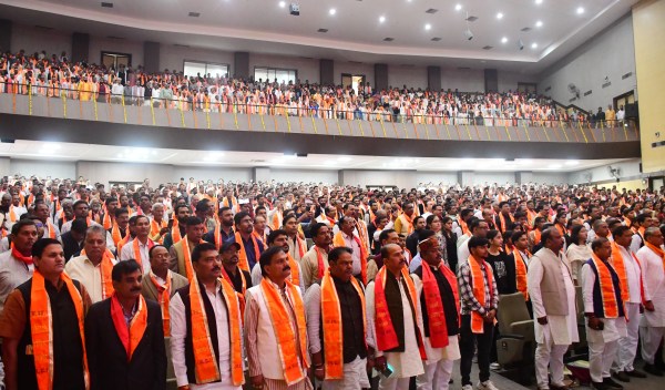 केंद्रीय कृषि मंत्री शिवराज सिंह चौहान और साधना सिंह ने समाज के लोगों का सम्मान किया