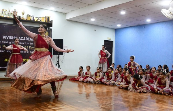 विविधा विश्व की पहली एकेडमी विश्व रिकॉर्ड बनाया 125 से छात्राओं ने एक के बाद एक क्रम से 12 घंटे तक लगातार शुद्ध शास्त्रीय कथक नृत्य की प्रस्तुति दी फोटो देखें