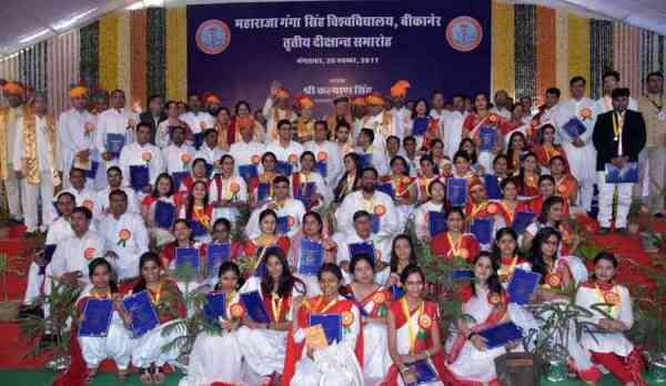 महाराजा गंगासिंह वि.वि. के तृतीय दीक्षांत समारोह में नवाचार, नए संकल्प और आश्वासनों के बीच 241 विद्यार्थियों को उपाधियां दी गई। इसमें से 148 विद्यार्थियों को डाक्टरेट एवं 89 स्वर्ण पदक प्रदान किए गए। दो-दो कुलाधिपति एवं कुलपति पदक दिए गए। दीक्षांत समारोह में उपाधियां एवं स्वर्ण पदक पाने वालों में छात्राएं आगे रही।