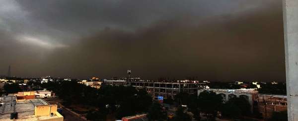 बीकानेर में शाम को मौसम में आए बदल से आई तेज आंधी से एकबारगी अंधेरा छा गया।पश्चिमी दिशा की ओर से उठा रेत का बवंडर पूरे शहर पर छा गया। इस बवंडर को पीबीएम की सुपर स्पेशल से लिया गया फोटो नौशाद अली