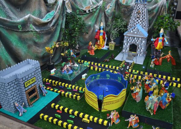 अब झांकियों में बह रहा इलेक्ट्रॉनिक करंट, धूल-मिट्टी के दिन लद रहे:बीकानेर में जन्माष्टमी पर शहर में झांकियां सजाने की परंपरा है। झांकियों में धूल,मिट्टी,पत्थर,कागज,गत्ता इत्यादि का अधिक उपयोग होता था। अब झांकियों में इलेक्ट्रॉनिक आइटम का रंग चढ़ चुका है। फोटो नौशाद अली