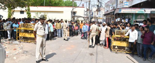 सड़क के दोनों और सुरक्षाकर्मी तैनात हैं। निगम के कुछ संसाधन सड़क पर बंद खड़े हैं। राहगीर कुछ पल रुक कर मार्केट की ओर निहारते निकल रहे हैं।फोटो-नौशाद अली