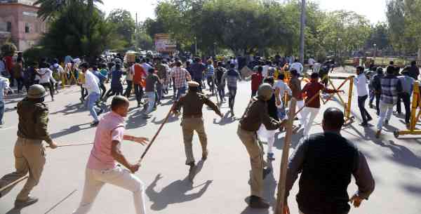कॉलेज के पूर्व छात्रसंघ अध्यक्ष मांगीलाल गोदारा, एमजीएसयू के छात्रसंघ अध्यक्ष जयवीर गोदारा के नेतृत्व में प्रर्दशन कर रहे छात्रों के कलक्टे्रट पर तैनात पुलिसकर्मियों से कहासुनी हो गई। इससे आक्रोशित छात्र बेरिकेड्स तथा पुलिसकर्मियों को धकेलने लगे और बेरिकेड्स के फांदकर जाने लगे। छात्रों को खदेडऩे के लिए पुलिस को उन पर लाठियां भांजनी पड़ी। लाठीचार्ज में छात्र मानवेन्द्रसिंह, हेमन्त भाटी, देवेन्द्रसिंह ख्याली एवं मांगीलाल गोदारा चोटिल हो गए।