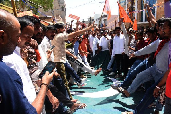 जम्मू कश्मीर के पहलगाम में पर्यटकों पर हुए आतंकवादी हमले को लेकर देश भर में आक्रोश देखने को मिल रहा है। ऐसे में आज बीकानेर में भी विश्व हिन्दू परिषद व बजरंग दल के साथ युवाओ ने दाउजी रोड से कोटगेट तक पैदल मार्च निकालकर आतंकवाद का पुतला व पाकिस्तान का झंडा फूंका कर अपना विरोध दर्ज करवाया। फोटो नौशाद अली।
