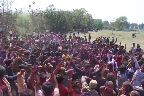 बिलासपुर विश्वविद्यालय में लड़कियों ने गुलाल उड़ा कर उल्लास करते हैं