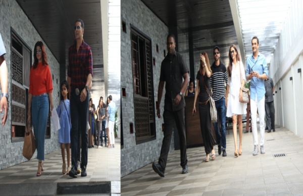 वहीं उनकी पत्नी ट्विंकल खन्ना आॅरेंज रंग की टीशर्ट और ब्लू जींस में खूबसूरत लग रही थी।