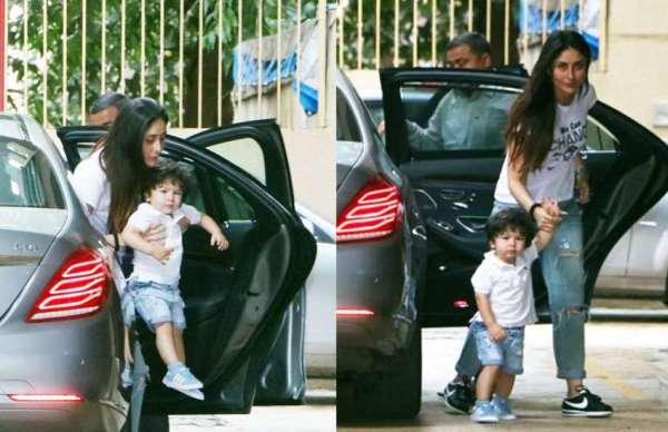 उस दौरान करीना और तैमूर दोनों ने वाइट टी-शर्ट और ब्लू जीन्स पहनी हुई थी।