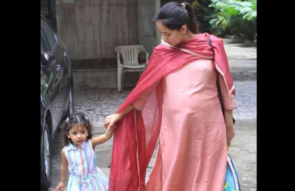 इस दौरान मीरा ने लाल रंग का सूट सलवार पहना हुआ था और उनका बेबी बंप भी नजर आ रहा है।
