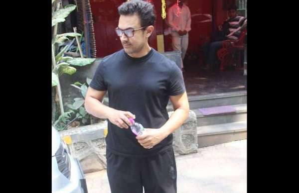 विजय कृष्ण आचार्य आमिर के घर के बाहर नजर आए।