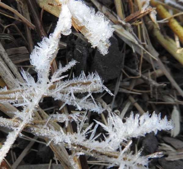 बूंदी के निकट एक खेत में रखी पराल पर जमी बर्फ।