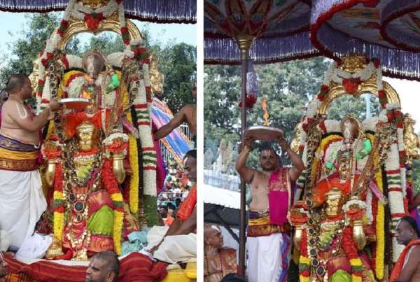 श्री मलयप्पा स्वामी ने अपने भक्तों को आशीर्वाद देने के लिए अपने विनम्र और महान भक्त हनुमंत पर कोदंडाराम के रूप में दिव्य सवारी की।