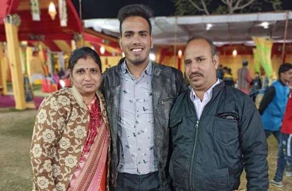 सीए फाउण्डेशन में एआईआर 34वीं रेंक पाने वाले पुठौली निवासी दीपक श्रीमाली माता-पिता के साथ।