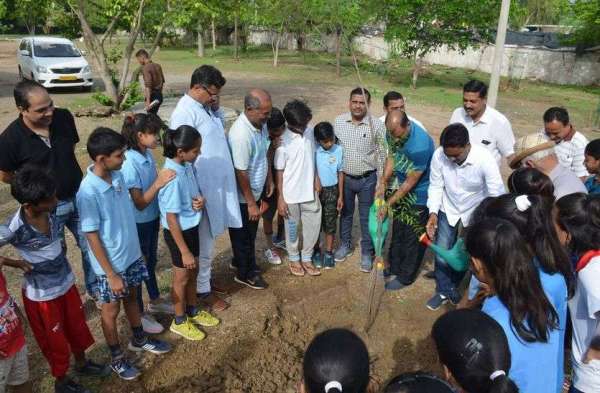चित्तौडग़ढ़ के इंदिरा गांधी स्टेडियम में पौधारोपण करते हिन्दुस्तान जिंक के लोकेशन हेड विनोद वाध व विभिन्न वर्गो के लोग।