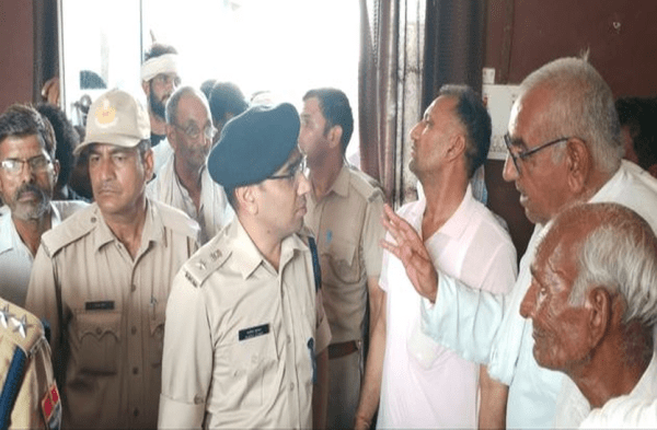 सादुलपुर. गांव इन्दासर में रोष व्यक्त करते ग्रामीण।