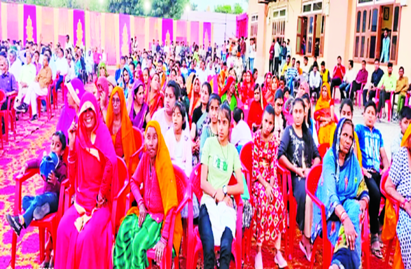 चूरू. दादाबाड़ी में आयोजित समारोह में उपस्थित महिलाएं व पुरुष।