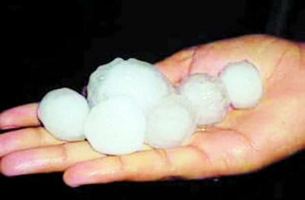 सादुलपुर. बारिश के दौरान ग्रामीण क्षेत्र में गिरे ओले।