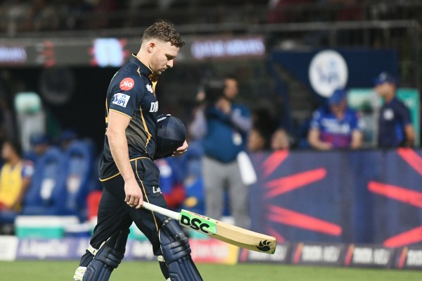 आउट होने के बाद मैदान से बाहर जाते गुजरात टाइटन्स के बल्लेबाज डेविड मिलर।
