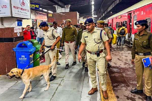 अजमेर में जीआरपी व आरपीएफ पुलिस के अधिकारी व जवानों ने रेलवे स्टेशन परिसर की सघन तलाशी ली। डॉग स्क्वॉड व मेटल डिटेक्टर की मदद से सम्पूर्ण स्टेशन में यात्रियों के सामान की जांच की गई। फोटो : वाहिद पठान