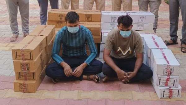 सिकंदरा थाने में पुलिस की गिरफ्त में शराब तस्कर एवं जब्त की गई शराब।