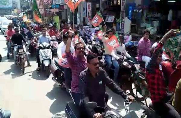 धमतरी. भाजपा के पूरे देश में भव्य विजय संकल्प मोटरसाइकिल रैली निकाली । यह रैली धमतरी नगर की आराध्य देवी मां विंध्यवासिनी मंदिर से निकली रैली गणेश चौक, सदर बाजार, मंदिर चौक होते हुए नगर घड़ी चौक पहुंची । यहां से नेशनल हाईवे होते हुए बस स्टैंड बठेना चौक पहुंचकर जमकर नारेबाजी की । देखें फोटो-