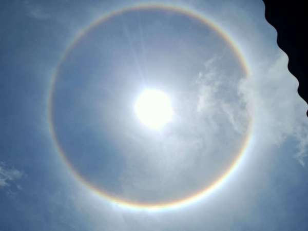 धार-रिंगनोद.यहां शुक्रवार दोपहर में सूरज के चारों ओर इंद्रधनुष गोलाकार में छा गया ।जिससे बड़ी संख्या में ग्रामीणों ने देखा साथ ही कई लोगों ने इस अद्भुत नजारे को अपने मोबाइल कैमरे में भी कैद कर लिया। इस सुंदर नजारे को शहर के अलग-अलग कोनों से पत्रिका पाठकों ने भी भेजाहै। रिंगनोद के सुंदर नजारे को असलम खान ने कैद किया।