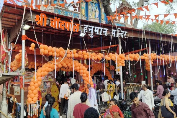 जयपुर के चांदपोल स्थित हनुमान मंदिर में भक्तों का लगा तांता। फोटो— प्रवीण वर्मा