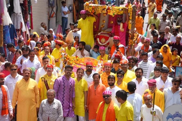 उदयपुर में हनुमान जयंती के अवसर पर बदनोर हवेली स्थित मंशापूर्ण हनुमान मंदिर से 1111 फीट लंबी पाग की भव्य शोभायात्रा निकाली गई।