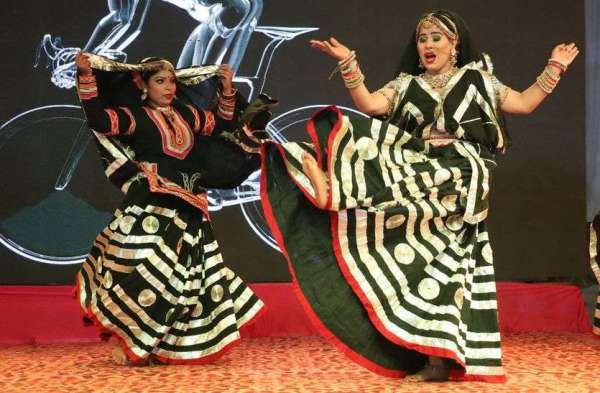 धौलपुर शरद महोत्सव मेले में चरकुला नृत्य की प्रस्तुति देते कलाकार