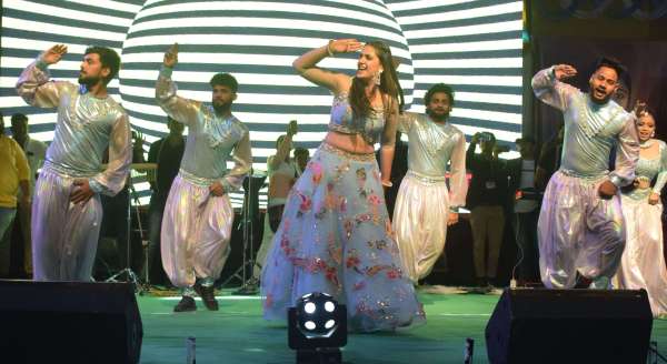 धोलपुर शरद महोत्सव में मेला रंग मंच पर प्रस्तुति देती हरियाणवी कलाकार प्रांजल दहिया