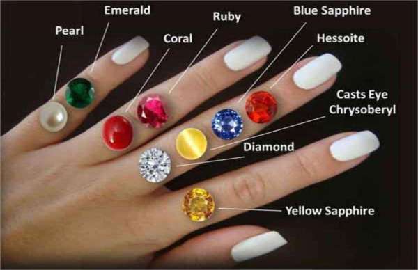 ज्योतिष विद्या के अनुसार नक्षत्र में नौ ग्रह हैं, इसलिए इनके रत्न भी 9 हैं। जिसमें सूर्य के लिए माणिक, चन्द्र के लिए मोती, मंगल के लिए मूंगा, बुध के लिए पन्ना, गुरु के लिए पुखराज, शुक्र के लिए हीरा, शनि के लिए नीलम, राहु के लिए गोमेद और केतु के लिए लहसुनियां शामिल है।