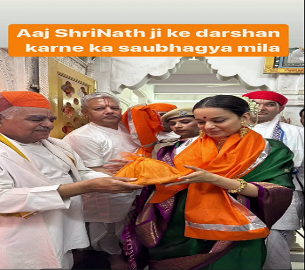 श्रीनाथजी मंदिर में दर्शन करने पहुंचीं कंगना ने इस दौरान राजभोग झांकी के दर्शन किए और विधि-विधान के साथ पूजा कर प्रभु से आशीर्वाद भी मांगा।