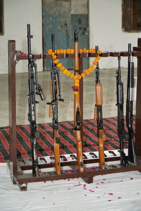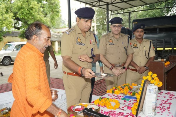रिजर्व पुलिस लाइन में शास्त्रों की साफ सफाई कर पूजा अर्चना की गई