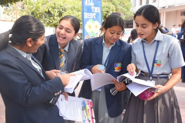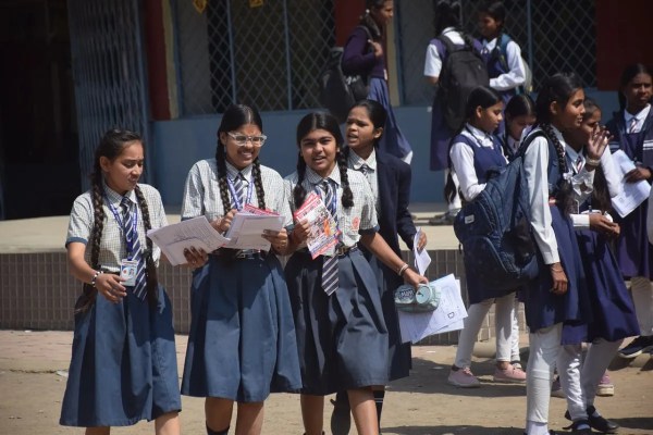 उदयपुर में सीबीएसई की 10वीं व 12वीं बोर्ड परीक्षा देकर परीक्षा केंद्र से बाहर निकलते छात्र-छात्राएं। प्रमोद सोनी
