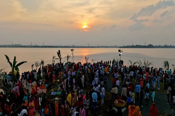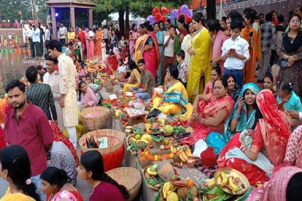 सूरत में छठ महापर्व पर शहर के विभिन्न घाटों तालाबों नदी तटों पर सूर्य भगवान को छठ पूजन के बाद अर्घ्य देने पहुंचे व्रती। फोटो. मुकेश त्रिवेदी