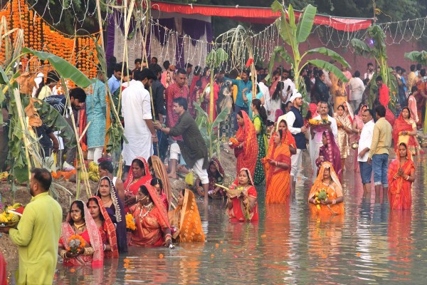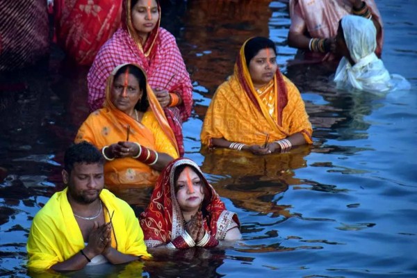 शहडोल छठ पूजा : मोहनराम तालाब में छठी मईया की पूजा करते हुए।