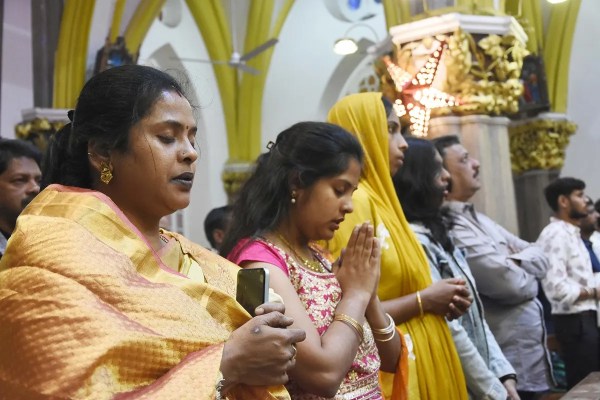बेंगलूरु के एक चर्च में प्रार्थना सभा में भाग लेते श्रद्धालु। फोटो— बी विजयकुमार